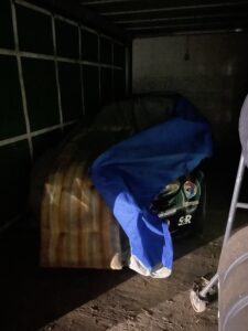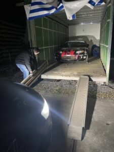 Genau das ist dann Montagabends am 10. Februar 2025 passiert. Zuvor wurde tagsüber der Hänger, der noch vor dem Container geparkt war, weggefahren, sodass dann Chris und ich überhaupt Zugang zu dem Container hatten. Daraufhin haben wir erstmal alles weggeräumt, was sich in den letzten Jahren so vor und auf dem Auto angesammelt hatte.